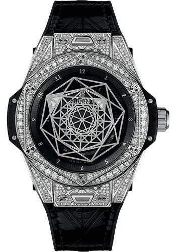 45 mm polished and satin-fi nished titanium case set with 172 diamonds, hexagonal decor polished...